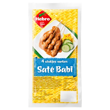 Hebro Saté Babi om je vingers bij af te likken. Heerlijk gemarineerde varkenssaté stokjes in pindasaus. Lekker bij frietjes, brood of de Oosterse maaltijd.