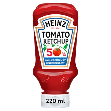 De onmiskenbare smaak van onze zongerijpte tomaten, samen met onze kennis en passie, geven onze Heinz Tomato Ketchup de onweerstaanbare smaak die je kent en waar je van houdt. Onze Tomato Ketchup is Grown not Made, en past daardoor overal perfect bij. Deze natuurlijke tomaten saus is te gebruiken voor zowel alledaagse gerechten als voor BBQ en Grill gerechten. Zonder ook maar enige kunstmatige kleur- en smaakstoffen of conserveermiddelen, is er geen andere ketchup die zo smaakt als Heinz. Tomato Ketchup 50% Minder Suikers & 50% Zout is de bewuste variant van Heinz Tomato Ketchup, met meer tomaat en de onmiskenbare smaak van Heinz Tomato Ketchup. De authentieke en onmiskenbare smaak van Heinz Tomaten Ketchup.