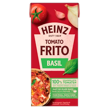 Ingrediënten: Tomaten (154g per 100g Tomato Frito), plantaardige oliën 3,4% (zonnebloem, soja in wisselende verhoudingen met extracten van gebakken ui en knoflook), suiker, basilicum 2%, gemodificeerd zetmeel, zout, zuurteregelaar: citroenzuur, natuurlijk basilicum aroma met andere natuurlijke aroma's.