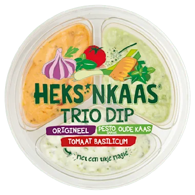 Met de HEKS'NKAAS® Trio Dip hoef je niet meer te kiezen! Drie magische smaken, handig in één verpakking. Geniet jij van HEKS'NKAAS® Origineel, ga je voor HEKS'NKAAS® Tomaat Basilicum of kies jij voor HEKS'NKAAS® Pesto Oude kaas. Eén ding is zeker, ze zijn allemaal betoverend lekker.