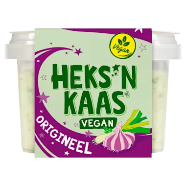 HEKS'NKAAS® Vegan is een betoverend lekkere borrel dip gemaakt van verse roomkaas, prei, peterselie en knoflook. Verrassend en romig van smaak met een lekker zoetje. HEKS'NKAAS® Vegan is perfect voor elk moment. Of je nu geniet van een borrel in het weekend, een ontspannen avond voor de tv, of tijdens de lunch met knapperig brood: HEKS'NKAAS® Vegan past er perfect bij. Smeer het op een toastje, dip er rauwkost in of serveer het bij een borrelplank. De 200g-emmer met sleeve is makkelijk in gebruik en te herkennen aan de paarse swush. Lekker dippen! Met stokbrood, groenten, chips of op een toastje. Tip: vul eens Bugles met HEKS'NKAAS® Vegan! Over HEKS'NKAAS® Wist je dat HEKS'NKAAS® bedacht is tijdens Halloween? Een groentenboer was in zijn keuken aan het experimenteren met roomkaas, verse kruiden en knoflook. Omdat het Halloween was vond hij dat zijn creatie ook een speciale naam moest krijgen en zo bedacht hij de naam Heksenkaas voor het product. Ook na Halloween bleven zijn klanten erom vragen. Wat begon als een spontaan idee, groeide uit tot een verrassend superlekkere combinatie die meteen in de smaak viel bij veel van zijn klanten.