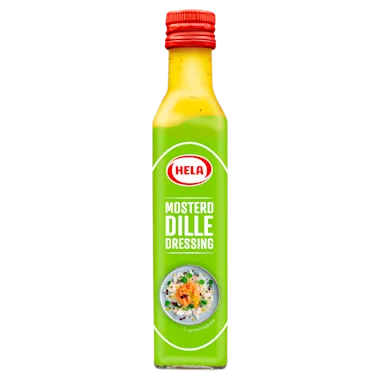 Hela Mosterd-Dille Dressing is een fris-zoete dressing met mosterd en dille. Gebruik Hela Mosterd-Dille Dressing bij o.a. salades, broodjes en wraps. Lekker in combinatie met zalm, kip en avocado.
