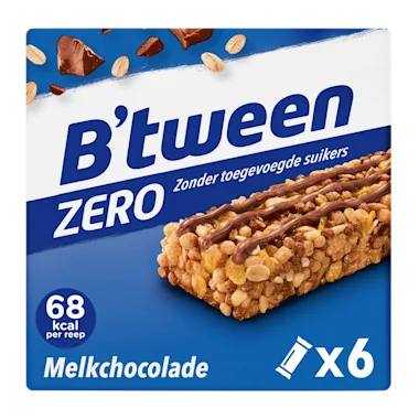 B'tween Zero mueslireep met Melkchocolade zonder toegevoegde suikers geeft je niet alleen dat beetje extra, maar stilt ook de lekkere trek. De ideale granenreep als tussendoortje!