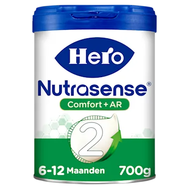Hero Nutrasense Comfort+ AR 2 is een dieetvoeding, geschikt voor kindjes vanaf 6 maanden, bij spugen, krampjes en/of moeizame ontlasting. Hero Nutrasense bevat een samenstelling met melkvet.