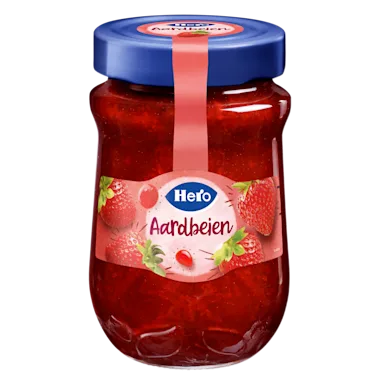 Hero Extra aardbeienjam laat je genieten. De fluweelzachte jam met stukjes aardbei zorgt voor een heerlijk zoet moment tijdens ontbijt, lunch en tussendoor.