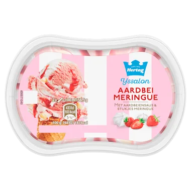 Laat je verrassen door Hertog Aardbeien Meringue Mini IJs, een onvergetelijke combinatie van heerlijk romig vanille- en aardbeienijs overgoten met aardbeiensaus en daarbovenop stukjes meringue met een laagje witte chocolade. Deze kleine verpakking is perfect voor als je lekker wilt genieten van een klein bakje ijs! Al sinds 1976 geniet Nederland van het heerlijke, romige ijs van Hertog. Met passie gecreëerd door onze ervaren ijsmeesters en bereid met zorgvuldig geselecteerde ingrediënten zonder kunstmatige kleur- en smaakstoffen. Bekroon je dag met een ijsje van Hertog IJssalon, heerlijk als nagerecht of gewoon voor tussendoor om alleen, of samen, van te genieten.
