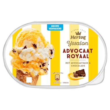 Hertog Advocaat Royaal IJssalon is een onvergetelijke combinatie van vanilleroomijs en advocaatroomijs overgoten met een advocaatsaus en rijkelijk bestrooid met pure chocoladekrullen die het helemaal afmaken. Hertog Advocaat Royaal IJssalon is met passie gecreëerd en wordt met hartstocht gemaakt door onze ervaren ijsmeesters met zorgvuldig geselecteerde ingrediënten, zonder kunstmatige kleur- en smaakstoffen. De Advocaat Royaal smaaksensatie is daarom ook een echte ijsspecialiteit die de liefhebbers van advocaat zeker niet zullen kunnen laten staan.
