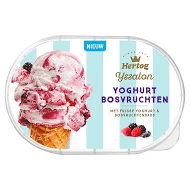 Tot op de dag van vandaag staat Hertog IJs voor heerlijk roomijs, bereid met de lekkerste ingrediënten. Met aandacht samengesteld om samen van te genieten. Hertog heeft verschillende smaken die je doen watertanden bij de gedachte, en ook nog eens voor iedereen! Of je op zoek bent naar een simpele basis voor jouw toetje, of een toetje waar je helemaal niks meer aan hoeft te doen. Ook kan je met Hertog ijs een heerlijk dessert maken voor de feestdagen. Met Hertog IJs creëer je overal en op elk moment een heus spektakel. Zo ook met de bijzondere smaak Hertog Ijssalon Yoghurt Bosvruchten. Een heerlijke combinatie van fris yoghurtijs en zachte bosvruchtensaus bedekt met lekkere stukjes bosvruchten. Deze smaaksensatie is daarom ook echt een ijsspecialiteit onder het ijs, die de liefhebbers van yoghurtijs zeker niet kunnen laten staan. Heerlijk om samen van te genieten met vrienden of familie. Benieuwd naar de andere smaken van Hertog IJs? Kijk op Hertogijs.nl voor al onze andere smaken en heerlijke recepten. Hertog Ijssalon Yoghurt Bosvruchten is met passie gecreëerd door onze ervaren ijsmeesters en bereid met zorgvuldig geselecteerde ingrediënten, zonder kunstmatige kleur- en smaakstoffen. Heerlijk in een bakje of op een hoorntje en lekker om samen van te genieten. Hertog, helemaal goed, sinds 1976.