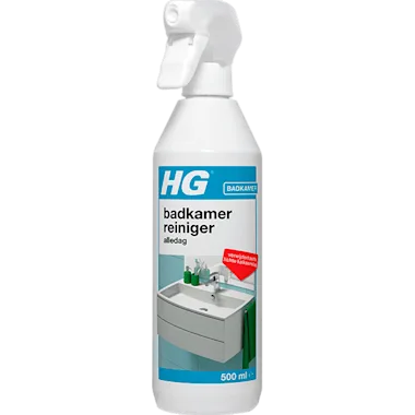 HG badkamerreiniger alledag is de ideale alledag reiniger voor wasbakken, kunststof douchecabines en tegelwanden. Het verwijdert snel lichte kalkaanslag, huidvetten en zeepresten. HG badkamerreiniger alledag kan probleemloos op alle materialen gebruikt worden, dus ook op marmer, travertin, granito en email.