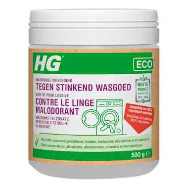 HG eco wasmiddeltoevoeging tegen stinkend wasgoed is een uiterst effectieve formule, waarmee stankmoleculen, die tot diep in de vezels zijn doorgedrongen, doeltreffend worden verwijderd. Wasgoed dat eerder na het wassen nog bleef stinken, ruikt nu weer heerlijk fris!