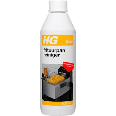 HG frituurpan reiniger verwijdert veilig en snel gestold, aangekoekt en ingebrand frituurvet uit de frituurpan-, deksel en het mandje. HG frituurpan reiniger is een gebalanceerd product en tast de frituurpan, deksel en het mandje niet aan. Frituurvet is hardnekkig omdat het door de hitte inbrandt, aankoekt en weer stolt. Het regelmatig reinigen van een frituurpan is dus essentieel, ook voor de gezondheid, en kan gedaan worden tijdens het verversen van het frituurvet.