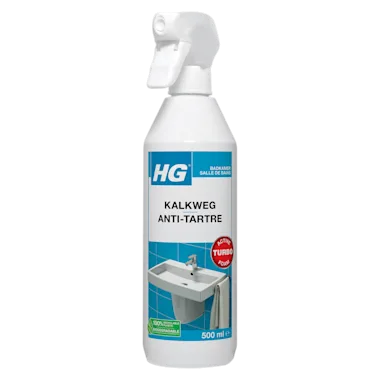 HG kalkweg schuimspray verwijdert doffe kalkaanslag grondig en snel en laat een stralende glans achter zonder chroom, glazuur en voegen aan te tasten.  HG kalkaanslag schuimspray geeft een vol schuim. Dit zorgt voor een langere inwerktijd en verwijdert zo veilig kalkaanslag. Na gebruik is de doffe waas van de kalk verdwenen en is het behandelde oppervlak weer stralend schoon. Geschikt voor douchecabines, kunststof baden, wastafels, kranen, douchekoppen en aanrechtbladen.