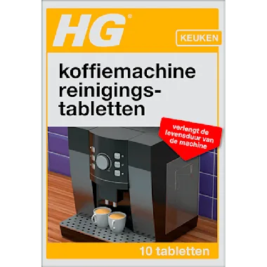 HG koffiemachine reinigingstabletten ontkalken (vol)automatische koffiemachines. Zo blijft de koffiesmaak optimaal, gaat het apparaat langer mee en worden storingen voorkomen. Door gebruik ontstaat aanslag van koffievetten en oliën in het interne systeem en de leidingen van (vol)automatische koffiemachines. Dit heeft invloed op de koffiesmaak en de levensduur. HG koffiemachine reinigingstabletten ontkalken de koffiemachine veilig en snel voor een betere smaak en een langere levensduur.