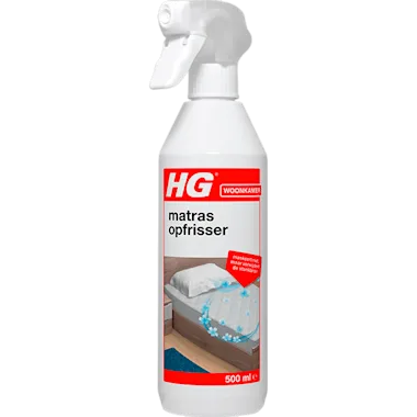 HG matrasopfrisser is geschikt voor het regelmatig en gemakkelijk opfrissen van het matras. Matrassen kunnen na verloop van tijd minder fris gaan ruiken door bijvoorbeeld nachtelijke transpiratie. Maar helemaal door overmatig transpireren bij griep, urineverlies of braaksel. HG matrasopfrisser is een biologische product op basis van enzymen en microben. Het maskeert de geur niet, maar verwijdert de ongewenste geuren effectief.