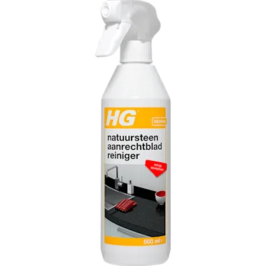 HG natuurstenen aanrechtblad reiniger is speciaal ontwikkeld voor een snelle, streeploze en veilige dagelijkse reiniging van natuurstenen aanrechtbladen. HG natuurstenen aanrechtblad reiniger verwijdert effectief en veilig vet en andere vervuiling en zorgt voor een streeploos resultaat zonder nawrijven. Bovendien geeft het structuurverdieping, waardoor het aanrecht elke dag weer z’n natuurlijke eigenschappen uitstraalt. Geschikt voor graniet, marmer, hardsteen en andere natuursteensoorten.