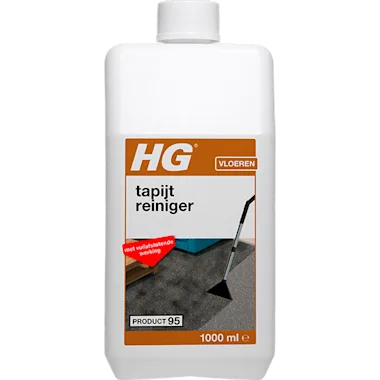 HG tapijtreiniger verwijdert vuil uit tapijt en bekleding. Dit product vult daarnaast ook de oneffen vezeloppervlakken op met een vuilafstotende laag. Door het lopen over een synthetisch tapijt worden de vezels beschadigd, waardoor ze gemakkelijk vuil vasthouden. Ook bij een wollen tapijt verdwijnt het natuurlijke wolvet langzaam. HG tapijtreiniger vult dit weer aan met vuilafstotend materiaal. 1 liter is goed voor 30 m2 vloeroppervlak.