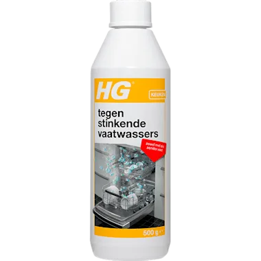 HG tegen stinkende vaatwassers neemt vervuiling in een stinkende vaatwasser effectief weg. Na de behandeling is de vaatwasser weer schoon en heeft weer een frisse geur. Vaatwassers kunnen minder fris ruiken, of zelfs stinken door aanslag van vet, voedsel- en zeepresten in de afvoerleidingen, filter en rubbers. HG tegen stinkende vaatwassers verwijdert deze vervuiling effectief en zorg zo voor een vaatwasser, die lang heerlijk fris ruikt. Bovendien bevordert het de hygiëne en een schonere vaat.
