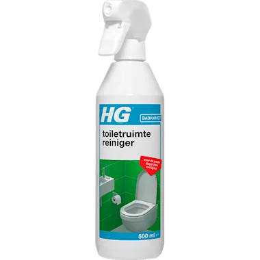 HG toiletruimte reiniger is een fris ruikende en sneldrogende sprayreiniger om dagelijks snel, gemakkelijk en hygiënisch alles in de toiletruimte te reinigen. HG toiletruimte reiniger is geschikt voor de toiletbril, de buitenkant van de toiletpot, de stortbak, het fonteintje, de kraan en zelfs de deurkruk. De speciale samenstelling zorgt voor een maximaal hygiënisch resultaat.