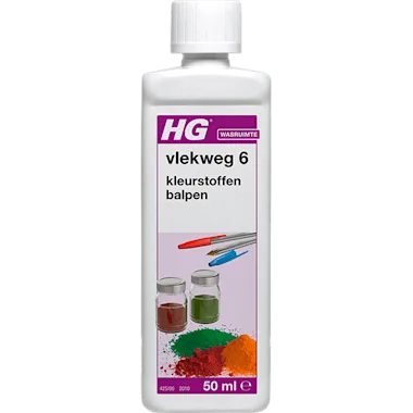 HG vlekweg 6 verwijdert vlekken uit textiel van: ballpoint, hardnekkige kleurstoffen maar ook bier en likeur.