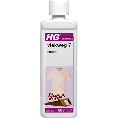 HG vlekweg 7 verwijdert roestvlekken uit textiel. Daarnaast verwijdert het product ook roestvlekken uit tegels, plavuizen, beton en niet kalkhoudend natuursteen.