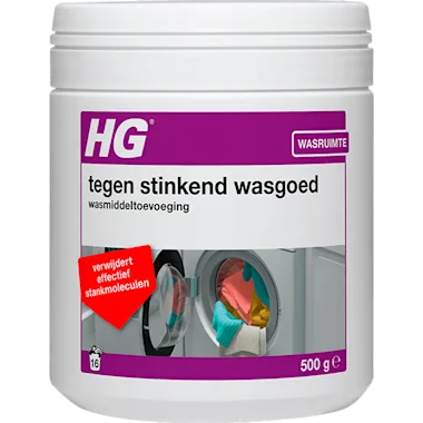 HG tegen stinkend wasgoed wasmiddeltoevoeging verwijdert effectief de stankmoleculen in textiel. Na het wassen ruikt het wasgoed weer heerlijk fris. Was kan gaan stinken als het lang vochtig is geweest zonder goed te drogen. Bijvoorbeeld bezwete kleding in een sporttas of was die te lang in de wasmachine of wasmand heeft gelegen. Een hoofdwasmiddel alleen verwijdert deze geur vaak niet. HG tegen stinkend wasgoed wasmiddeltoevoeging verwijdert deze geur wel effectief.