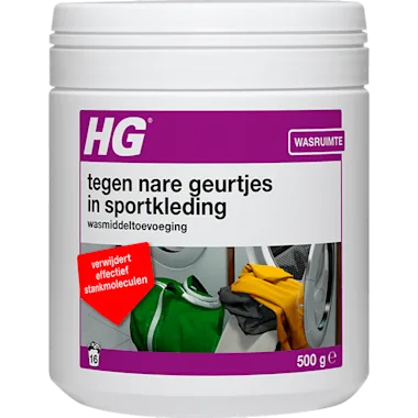 HG tegen nare geurtjes in sportkleding wasmiddeltoevoeging is een uiterst effectieve formule waardoor stankmoleculen, die tot diep in de vezels zijn doorgedrongen, doeltreffend worden verwijderd. Een hoofdwasmiddel verwijdert nare geurtjes in sportkleding vaak niet. Als kleding wordt gestreken of gedragen is deze geur weer waarneembaar. HG tegen nare geurtjes in sportkleding verwijdert deze geur wel effectief. Ook geschikt voor het ontgeuren van handdoeken en goed voor ongeveer 16 wasbeurten.
