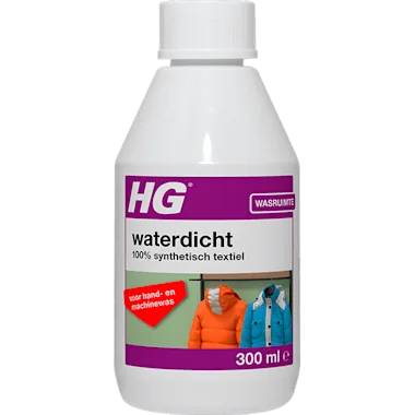 HG waterdicht voor 100% synthetisch textiel is speciaal ontwikkeld om polyamide, polyester, nylon en ander 100% synthetisch textiel water- en vuilafstotend te maken. HG waterdicht voor 100% synthetisch textiel is dan ook ideaal om ski- en regenkleding, maar bijvoorbeeld ook, tuinmeubelhoezen, water- en vuilafstotend te maken.