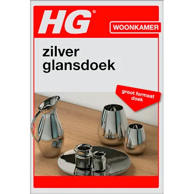HG zilver glansdoek is een speciaal geïmpregneerde doek die zilveren of verzilverde voorwerpen makkelijk weer op glans brengt.  HG zilver glansdoek is een geïmpregneerde doek gemaakt van een hoogwaardige textielsoort, die zelfs licht geoxideerde zilveren en verzilverde voorwerpen weer op glans brengt. Door het formaat hoeft het zilver niet met de blote handen aangeraakt te worden. Hierdoor wordt er een snelle heroxidatie door vingerafdrukken voorkomen.