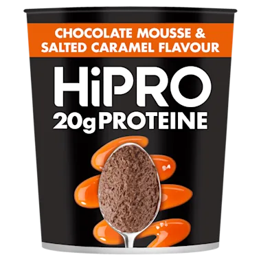 HiPRO Proteïne Mousse is een heerlijk luchtige mousse met chocolate & salted caramel smaak. Hoog in proteïne, laag in vet en zonder toegevoegde suikers: dat is lekker verantwoord genieten!