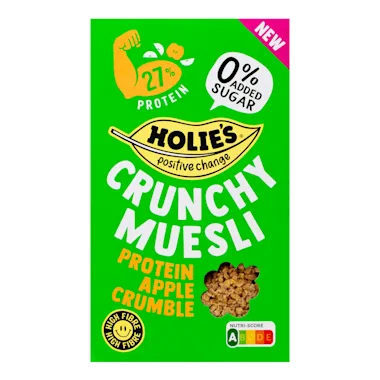 Ingrediënten: Volkoren HAVERVLOKKEN 38,8%, TARWE-EIWIT 23%, Cichoreiwortelvezel 19%, Zonnebloemolie 9%, TARWEGLUTEN 5%, Gedroogde appel 4,5%, Kaneel 0,5%, Natuurlijk aroma 0,2%, Antioxidant: tocoferolrijk extract. Kan gerst, rogge, melk, amandel, cashew, hazelnoot, macadamia, paranoot, pecan, pistache, walnoot en pinda bevatten.
