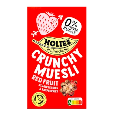 Ingrediënten: Volkoren HAVERVLOKKEN 47%, Cichoreiwortelvezel 19%, Volkoren SPELTVLOKKEN 8%, Rijstebloem 8%, TARWEBLOEM 7%, Zonnebloemolie 6%, Gevriesdroogde aardbei 3%, Gevriesdroogde framboos 2%, Antioxidant: tocoferolrijk extract. Kan gerst, rogge, melk, amandel, cashew, hazelnoot, macadamia, paranoot, pecannoot, pistache, walnoot en pinda bevatten.