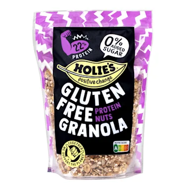 Ingrediënten: SOJAVLOKKEN 30%, Glutenvrije volkoren havervlokken 23%, Zonnebloempitten 21%, Boekweit 8%, Cichoreiwortelvezel 5%, HAZELNOTEN 4%, Gepofte rijst 4%, AMANDELEN 4%, Kaneel 1%. Kan cashew, pecannoot en pinda bevatten.