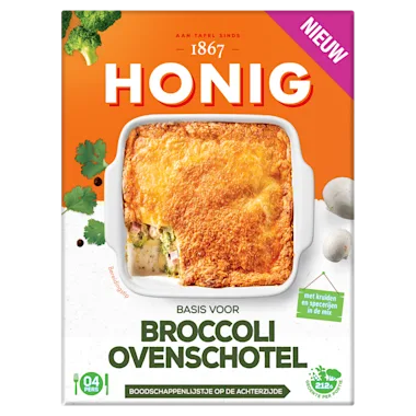 Honig basis voor Broccoli Ovenschotel is een maaltijdmaaltijdmix met verschillende kruiden en specerijen, zoals peterselie en kurkuma. Door het toevoegen van verse ingrediënten, zoals groenten en vlees, zet je snel en makkelijk een heerlijke maaltijd op tafel. Deze maaltijdmaaltijdmix is goed voor een maaltijd voor 4 personen en staat in slechts 35 minuten op tafel. Kook zoals de algemene bereidingswijze met hamblokjes of vervang deze door kipblokjes. Vergeet niet om je eigen draai eraan te geven! Dus aan tafel met Honig!