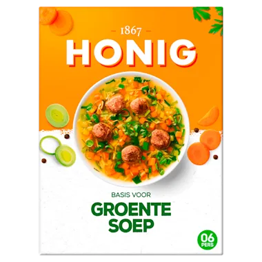 Honig Groentesoep is een heldere soep, gevuld met groenten en fijne vermicelli. Door het toevoegen van verse ingrediënten maak je zo een heerlijke, zelfgemaakte soep.