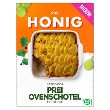 Honig basis voor Prei Ovenschotel is een mix voor een smaakvolle saus met specerijen. Door het toevoegen van verse ingrediënten zet je snel en makkelijk een heerlijke maaltijd op tafel!