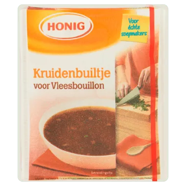 Honig Kruidenbuiltje voor Vleesbouillon is de basis voor je zelfgemaakte soep, saus, of ragout. Kooktijd: ca. 10 minuten voor lichtgekruide bouillon, ca. 60 minuten voor extra gekruide bouillon.