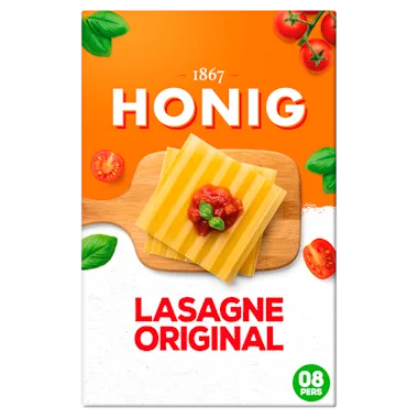 Honig Lasagnebladen hebben een golvende vorm, waardoor ze de saus extra goed vasthouden. Met Honig als basis en eigen ingredienten maak je zo een lekker pastagerecht. Deze portie voor 8 personen staat al binnen 30 minuten klaar. De favoriet van