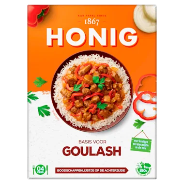 Met Honig basis voor Goulash maak je een traditioneel Hongaars stoofgerecht. Goulash smaakt lekker bij rijst, aardappel en / of pasta: door het toevoegen van verse ingrediënten zet je zo een heerlijk gerecht op tafel.