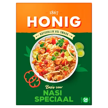Maak je eigen maaltijd met de Honig basis voor Nasi Speciaal een mix van kruiden en specerijen o.a. knoflook en limoenblad. Natuurlijk vol smaak, want niet alleen heel smakelijk maar ook nog vol met natuurlijke ingrediënten en zonder toegevoegde suikers.