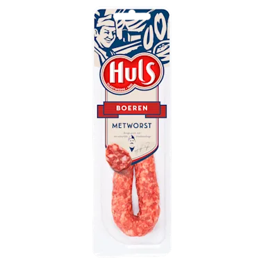 Huls Boerenmetworst is en stevige worst met een natuurlijke kruidenmelange. Traditioneel ambachtelijk bereid. Heerlijk voor bij de borrel of als tussendoortje.