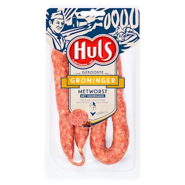Huls Gekookte Groninger Metworst heeft een uniek karakter door het gebruik van een kruidenmengsel met kruidnagel. Heerlijk voor bij de borrel, bij de stamppot of als tussendoortje.