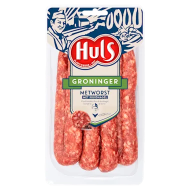Huls Groninger Metworst heeft een uniek karakter door het gebruik van een kruidenmengsel met kruidnagel. Heerlijk voor bij de borrel of als tussendoortje.