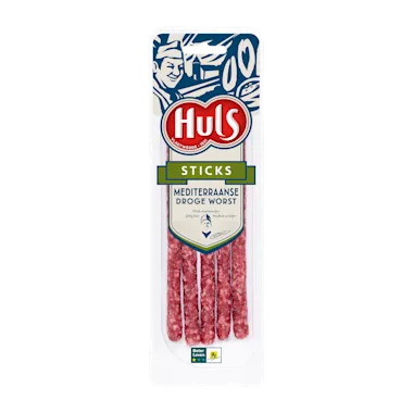 Huls Sticks zijn stevige worststicks, traditioneel bereid van varkensvlees, mediterraans gekruid door de toegevoegde knoflook en oregano.