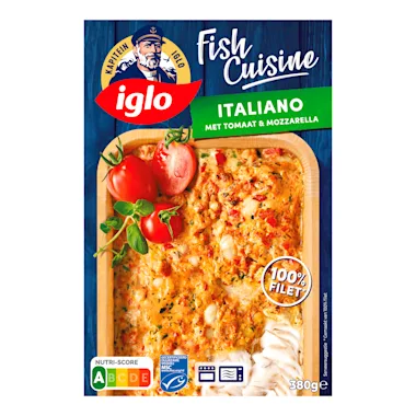 Fish Cuisine Italiano, een heerlijke visgratin te bereiden in de oven. Gemaakt van 100% filet met een smaakvolle saus van tomaat, paprika en mozzarella!