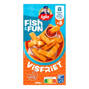 Maak een feestje van je bord met de knapperige Visfriet van iglo! Gemakkelijk te bereiden in de oven, pan of airfryer. Ook lekker voor op de borrelplank of in een wrap!