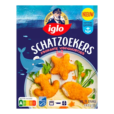 Met de Schatzoekers van iglo wordt elke maaltijd een avontuur! Laat je verassen door drie verschillende visfiguurtjes in een krokant jasje, gemakkelijk te bereiden in de oven, pan of airfryer.