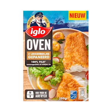Iglo Lekkerbekjes, maar dan speciaal ontwikkeld voor de oven. Gemaakt van 100% filet met een extra knapperig jasje. Heerlijk bij een frisse salade en wat aardappeltjes!