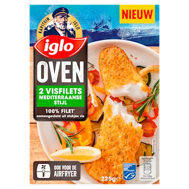 Iglo Oven Visfilet Mediterraanse Stijl bestaat uit 100% visfilet in een jasje die op smaak gebracht is met rozemarijn. Heerlijk bij een Mediterraanse maaltijd!