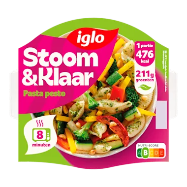 Iglo Stoom & Klaar Pasta Pesto is een heerlijke 1-persoonsmaaltijd zó klaargestoomd!