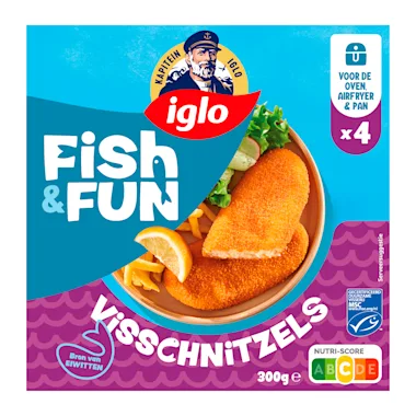 Maak een feestje van je bord met de knapperige Visschnitzels van iglo! Gemakkelijk te bereiden in de oven, pan of airfryer. Lekker met wat frietjes en een salade!